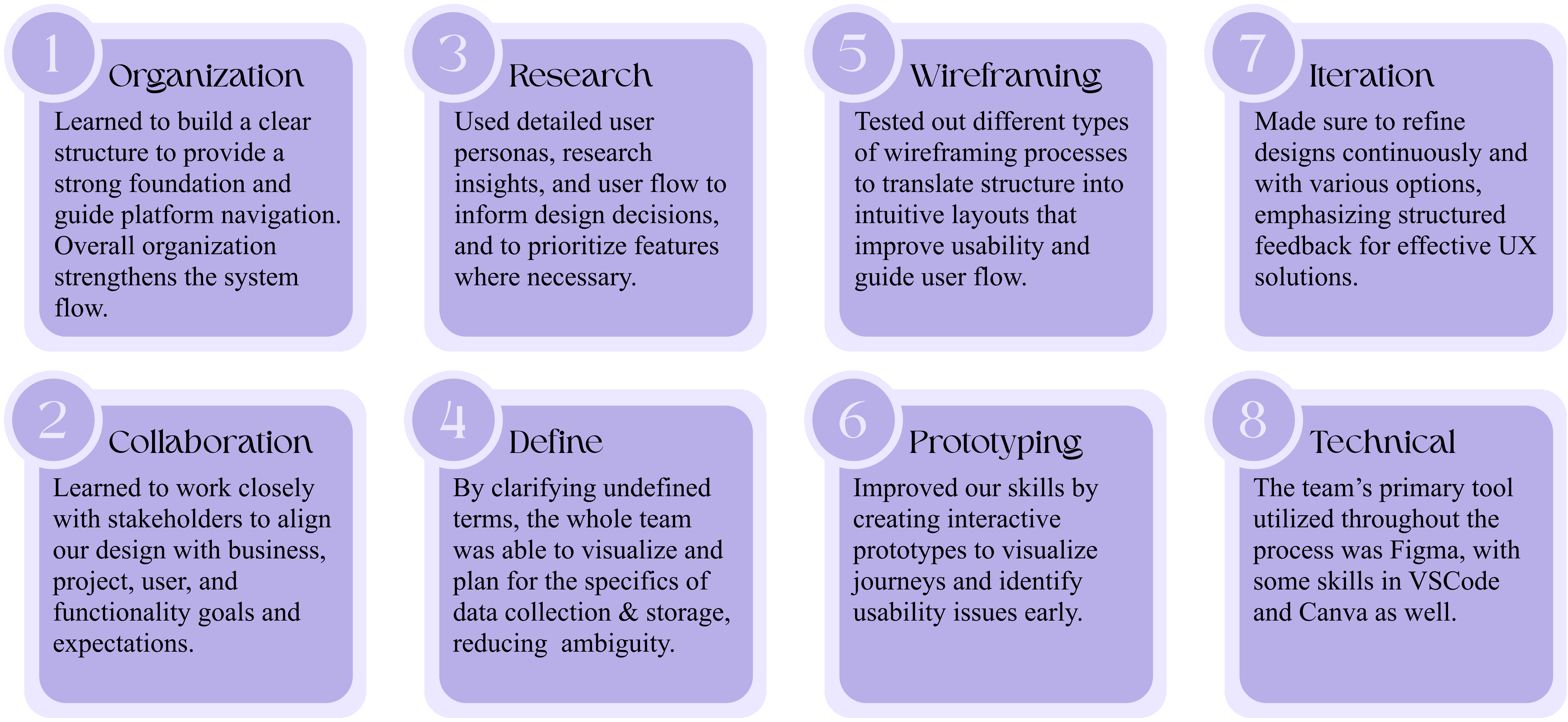 Refined wireframes and the overall site map through continuous feedback loops, making iterative improvements to strengthen usability, structure, and clarity across the platform.