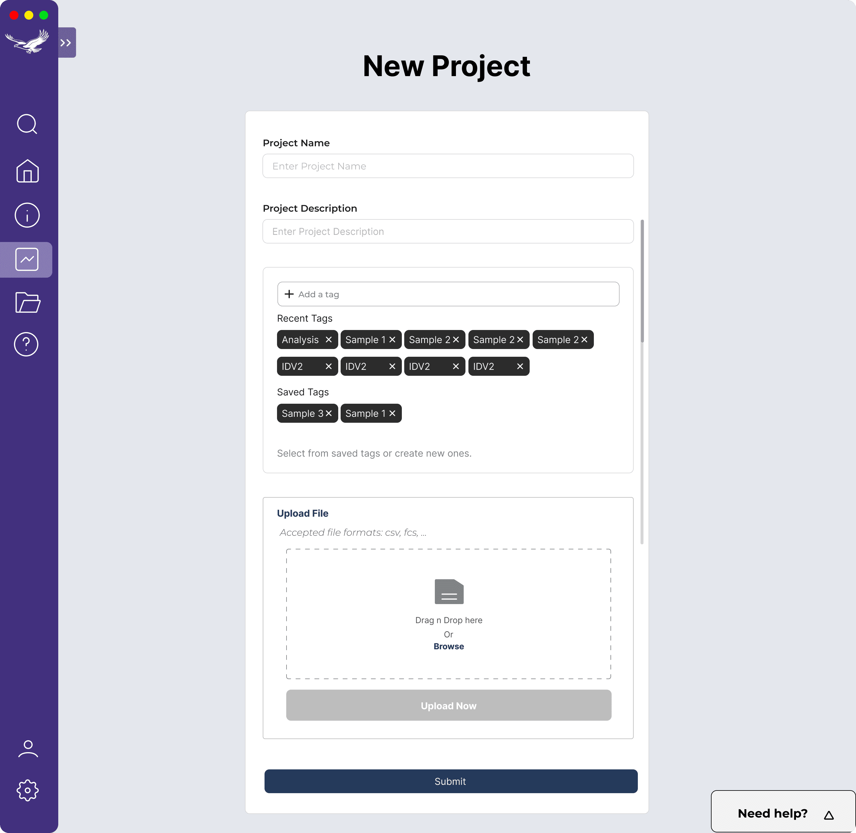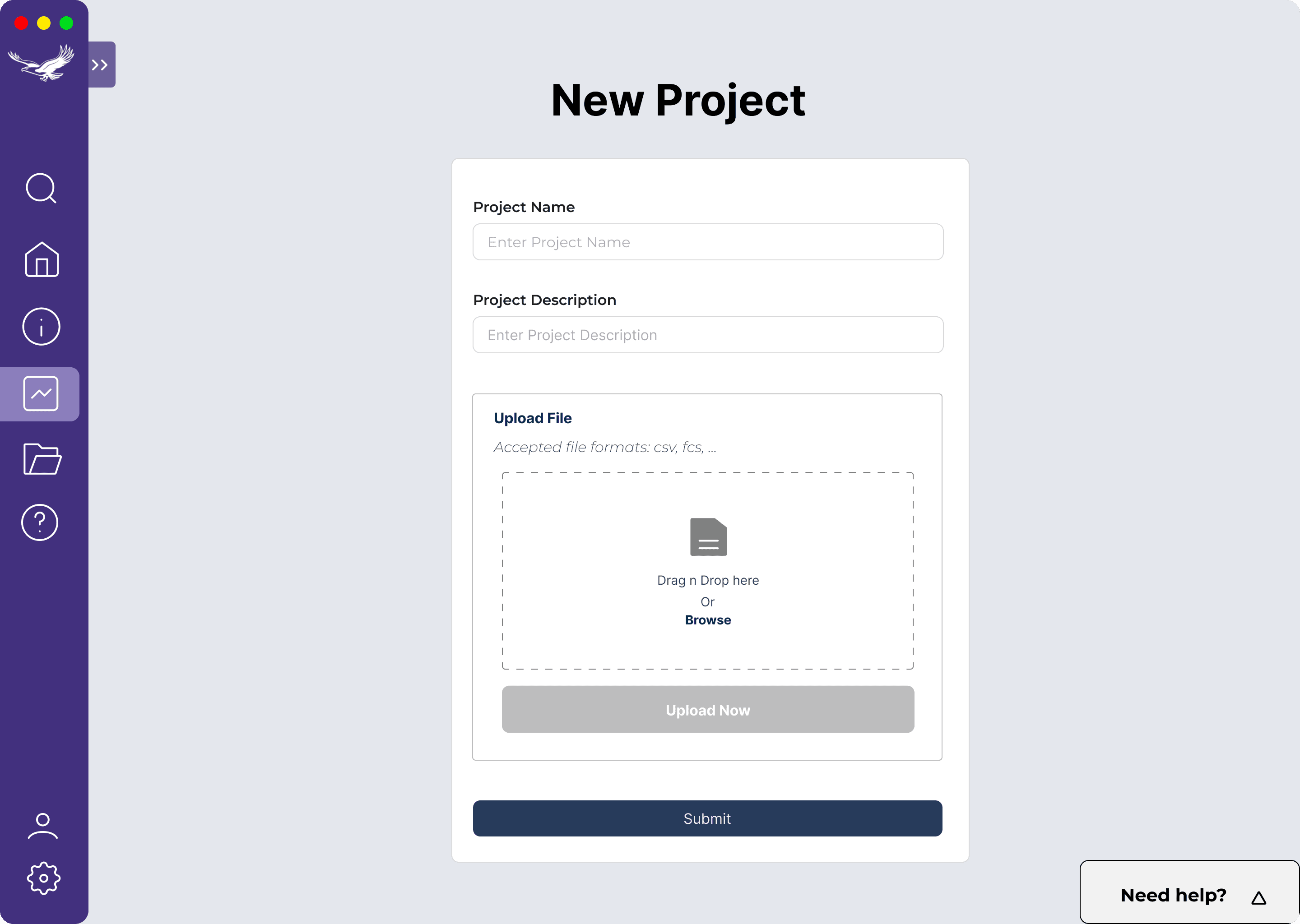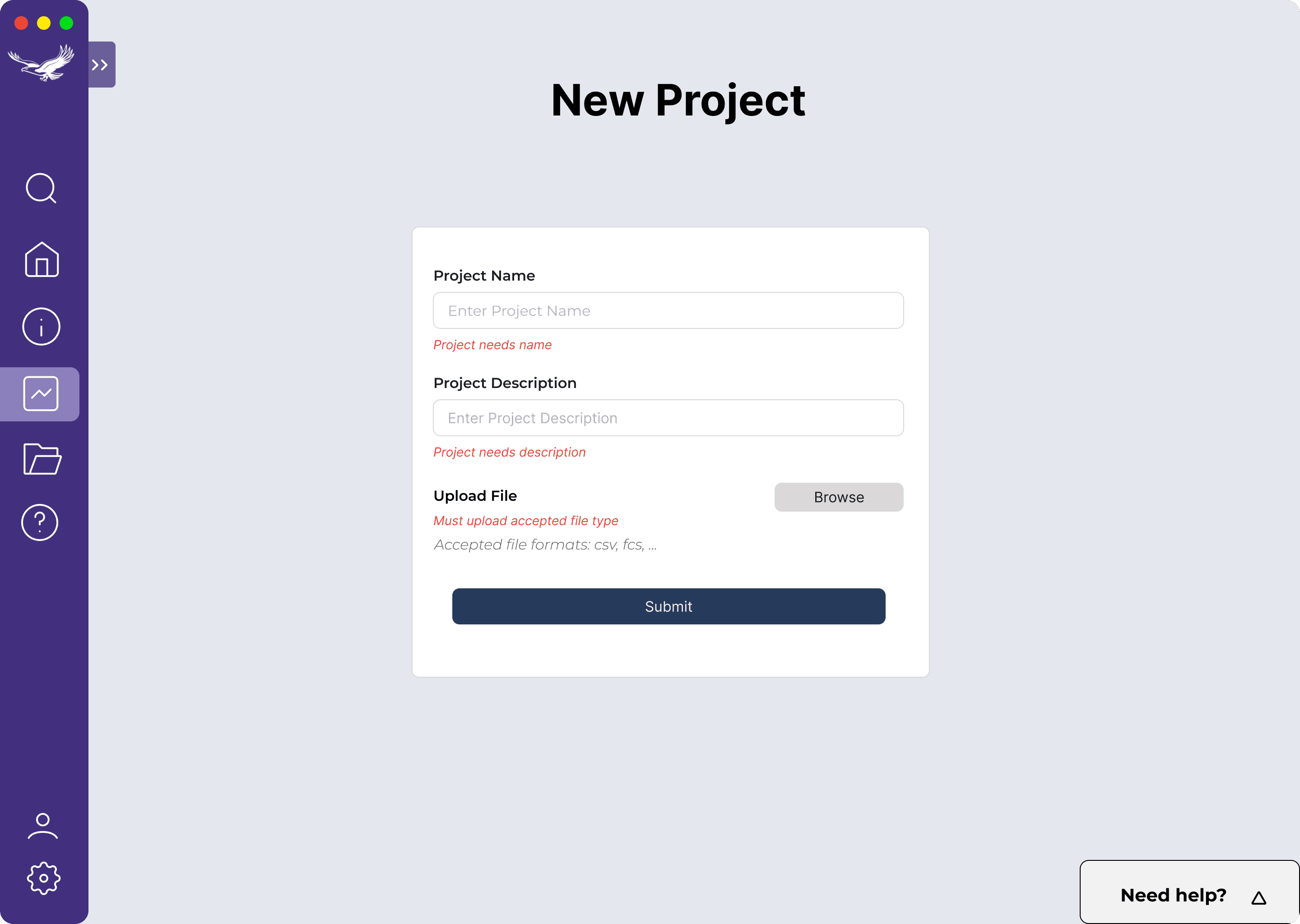 Defined what would be allowed file formats and made clear which information fields need to be completed before proceeding.